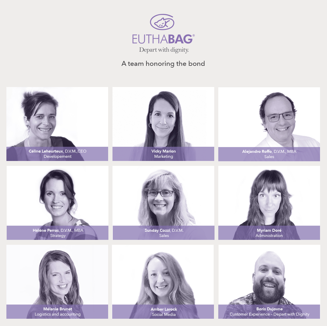 Created in 2016 by Celine Leheurteux, a small animal Canadian veterinarian, Vetceterra Solutions (VS) is now exporting in 30 countries and provides a dignified ending to close to 700 000 animals a year. Still a young and agile company with innovative ideas, VS now has the means to have great ambitions to put our vision in action.